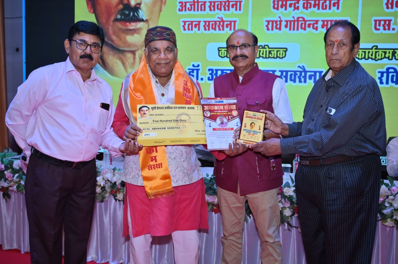 विदित हो की इस कार्यक्रम की अध्यक्षता श्रीअजित सक्सेना एवं संचालन श्री अरुण सक्सेना ने किया। मुख्य अतिथि तथा निर्णायक मंडल के रुप में बड़े-बड़े साहित्यकार पधारे थे। उन्होने बताया कि इस कार्यक्रम में देश भर से 23 राज्यों के साहित्यकारों ने भाग लिया। कार्यक्रम के संयोजक एवं अभाकाम संस्था के महासचिव डाॅ अरुण कुमार सक्सेना ने बताया कि जाति-धर्म से ऊपर उठकर बगैर भेदभाव के साहित्यकारो को पांच श्रेणियों में कुल 148357/_ रुपये की पुरस्कार राशि दी गई है। बिहार के हीजीपुर (सहदेई बुज़ुर्ग )के कवि, साहित्यकार के रुप में रवीन्द्र कुमार रतन जो अवकाश प्राप्त बैंक अधिकारी रहें है को " मुंशी प्रेमचंद साहित्यरत्नसम्मान से नवाजा गया। कार्यक्रम में लगभग एक सौ से अधिक साहित्यकारों , कवियों एवं समीक्षकों को सम्मानित किया गया ।
